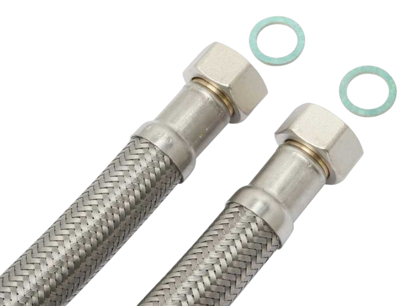 Diffusionsdichter Panzerschlauch (2,5 m, 3/4″) für das Befüllen und Nachspeisen von Heizungsanlagen mit VE-Wasser.